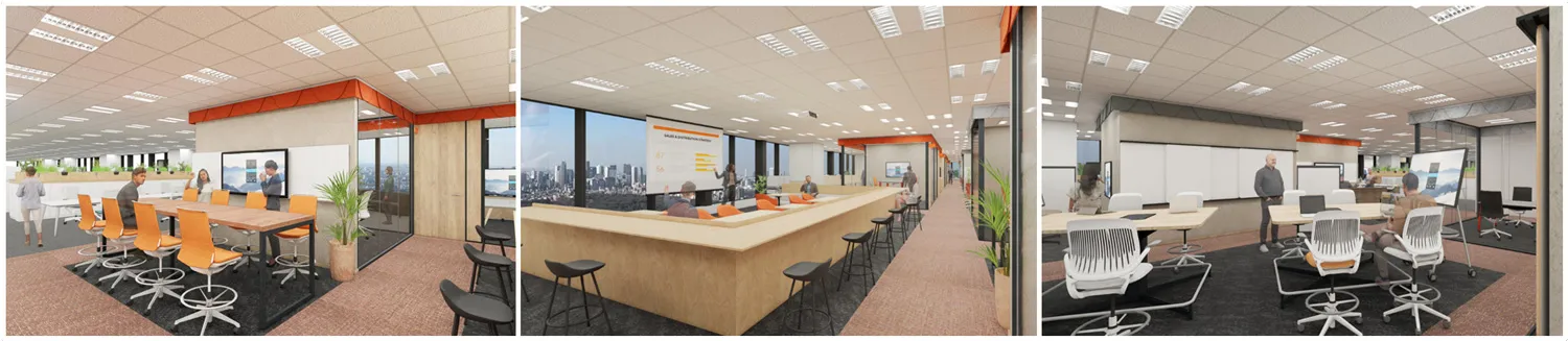 当社はパンデミック後も継続して場所や時間にとらわれない柔軟な働き方を推進しています。今般のオフィス(オフライン)環境の改善においては、社員の意見も取り入れながら、現状のオフィス利用率に併せたスペース効率の向上と、社員同士の「コラボレーション」「コミュニケーション」「コネクション」をさらに促す環境づくりを意識した改装を行います。