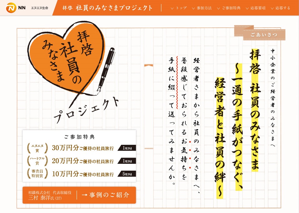 | 名称 | 「拝啓 社員のみなさま ~1通の手紙がつなぐ、経営者と社員の絆~」キャンペーン |