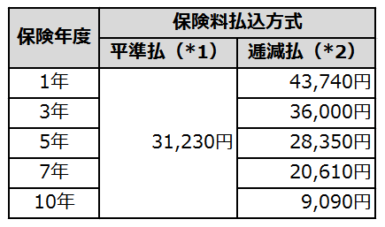 - 保険料逓減払込方式に関する特則を適用した場合で、保険料が毎年減少していきます。