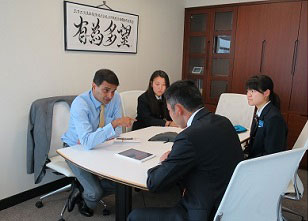 「Job Shadow」は、高校生を対象とした職業体験です。今回は、京都府の京都市立堀川高校2年生の生徒を迎え、当社社長のサティッシュ・バパットにシャドウ(影)のごとくついてまわりながら外資系生命保険会社の「社長の仕事」をともにしました。様々な役職、部門の社員との会議や執務を通じ、中小企業およびその経営者を財務や財産の面で支援するという当社のビジネスを肌で体験してもらいました。