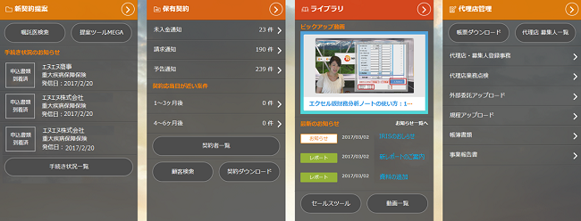 (新規契約の申込状況や既契約の通知情報の確認がモバイル端末から可能に) - トレーニングツールとしての動画や募集補助資料、研修資料等を掲載