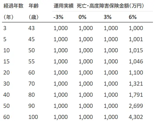 運用実績にかかわらず、基本保険金額は最低保証されます