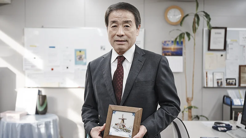 今から思うとのどかな時代背景もあり、楽しみながら遊びにきているようだったといいます。当時の法人名が入った「ナショナーレ・ネーデルランデン」のノベルティである、オランダをイメージした風車が描かれたタイルは、約40年の間いつも目に入る場所に飾っています。