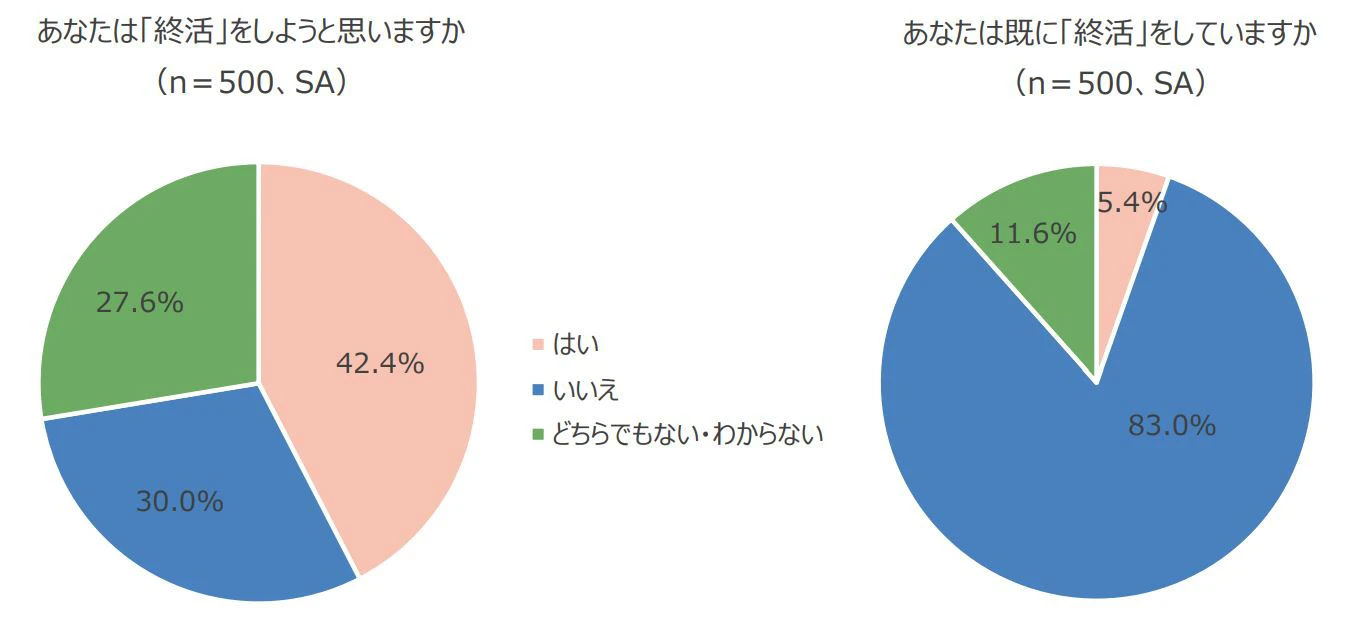 また、既に「終活」をしているか聞いたところ、「はい」と回答したのは全体で5.4%でした。