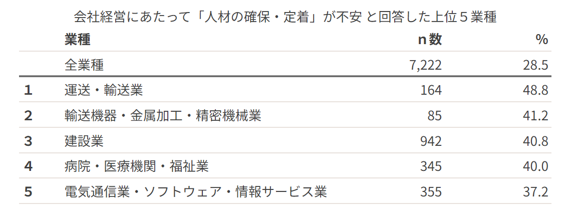 | 1 | 運送・輸送業 | 164 | 48.8 |