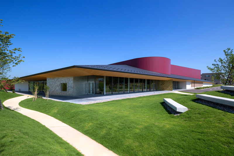 能作の新工場・本社は、北陸新幹線新高岡駅から車で15分ほど、高岡市の企業団地「高岡オフィスパーク」の一画にある。2017年4月に完成したこの建物は、400年の歴史を誇る鋳物の街、高岡市のシンボルになっている。その外観、特に緋色の屋根に圧倒される。この色に決めた理由を克治氏に聞くと、