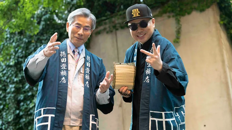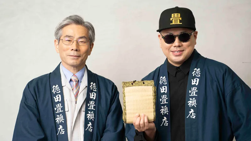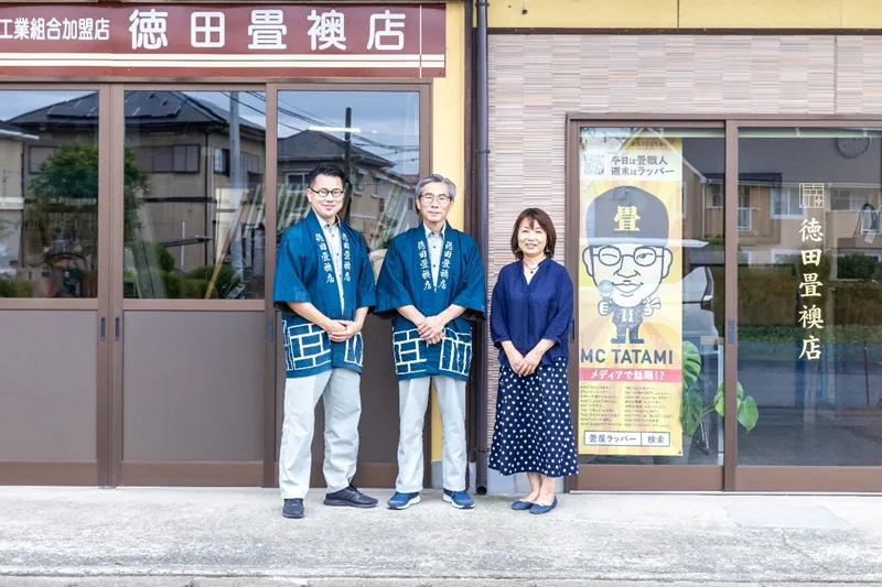 福岡県朝倉市で120年に渡り、地元のみならず福岡広域で畳や襖の製造を手がけているのが、株式会社徳田畳襖店だ。三代目の代表取締役社長徳田幸生氏は、福岡県畳工業組合の品質管理責任者を取得し、日頃から仕入れから納品までを製造管理している。一方、四代目の直弘専務取締役は、ラッパーとしての肩書を持ち、「歌う畳屋」としてメディアを通じ多くの人に畳文化を広める多彩な活動を続けている。